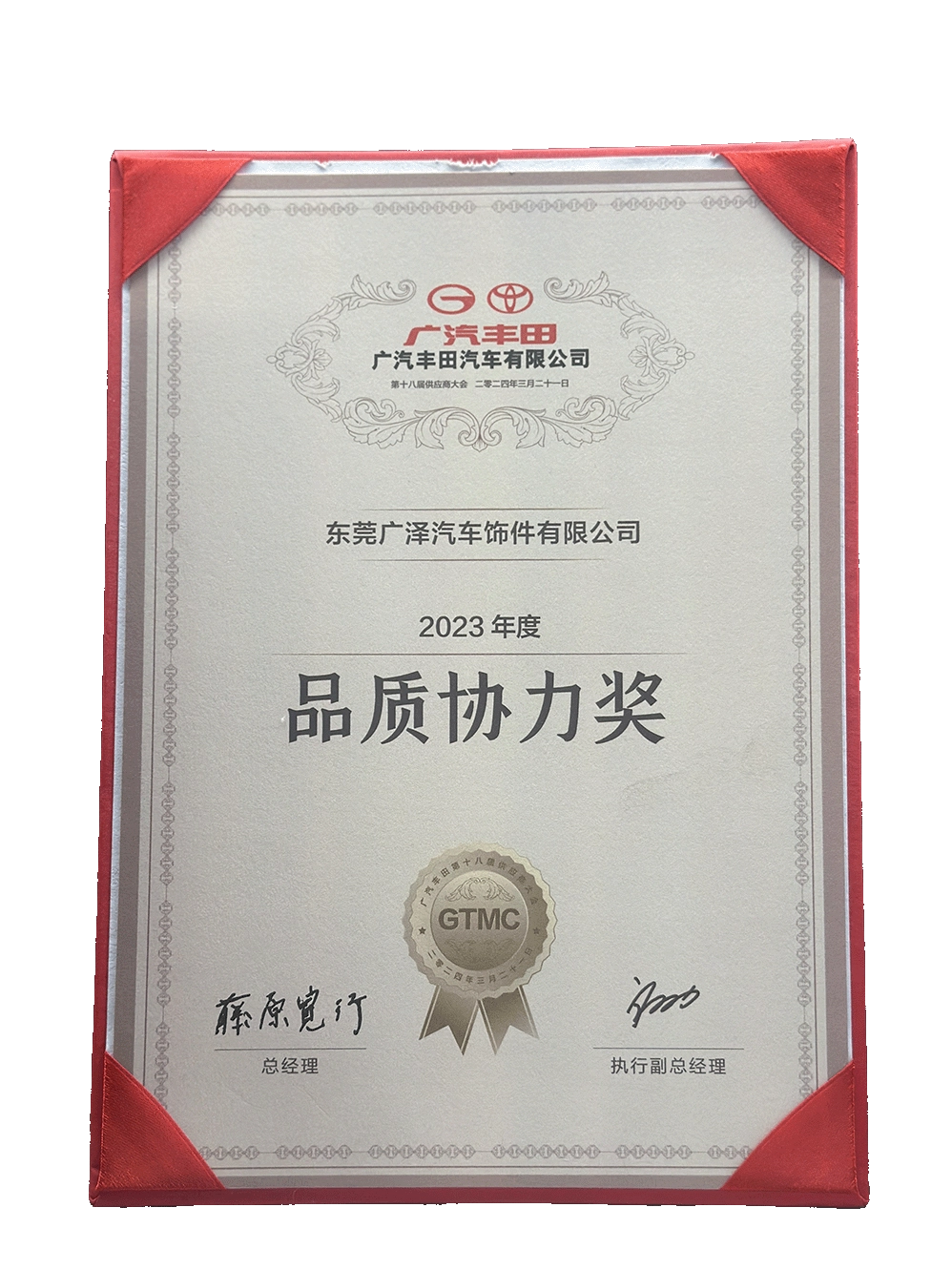In 2023Awarded GAC TOYOTA's "Quality Collaboration Award" -