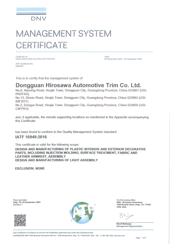 In 2017Awarded Toyota Boshoku's "Excellence in Quality Award" -